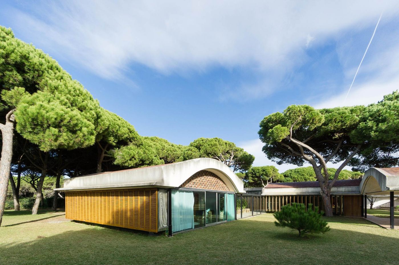 Nestled within a vast pine forest near the seashore, Casa Gomis was commissioned by the Gomis-Bertrand family as a private family residence. Antoni Bonet, an influential architect and avant-garde cultural figure, created a home featuring expansive rooms and large windows that harmoniously blend indoor and outdoor spaces. This architectural choice connects the residence to the natural beauty of the Llobregat Delta, promoting a seamless balance between daily living and the surrounding environment.
